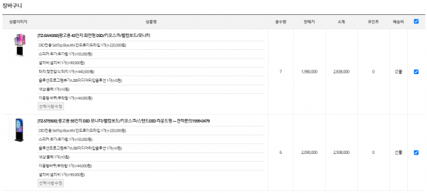 제품 | 키오스크 견적서 요청건
