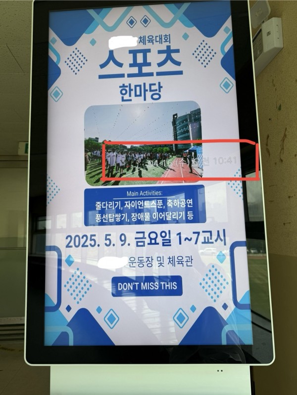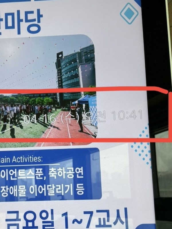 저희 학교에 설치된 샤이니지 화면에 표시되는 날짜와 시간을