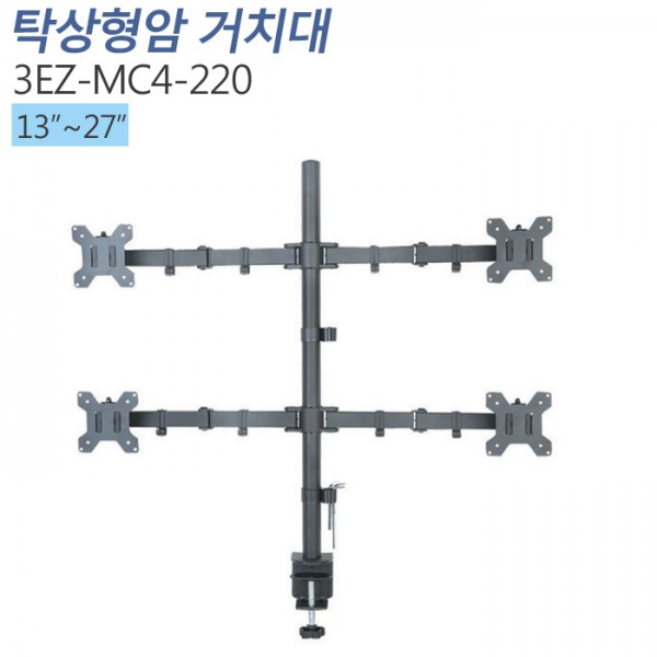 [3EZ-MC4-220]13~27인치4대 책상형거치대 적재무게(대당8kg)이하/클램프방식/모니터 스탠드브라켓 > 거치대 마운트