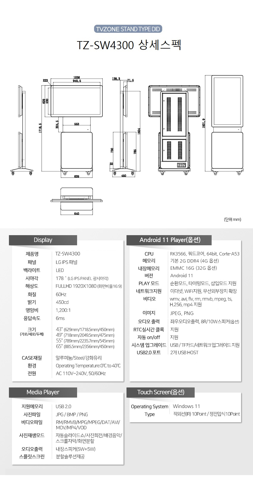 [TZ-SW4300]광고용 43인치 회전형 DID/키오스크/웰컴보드/모니터